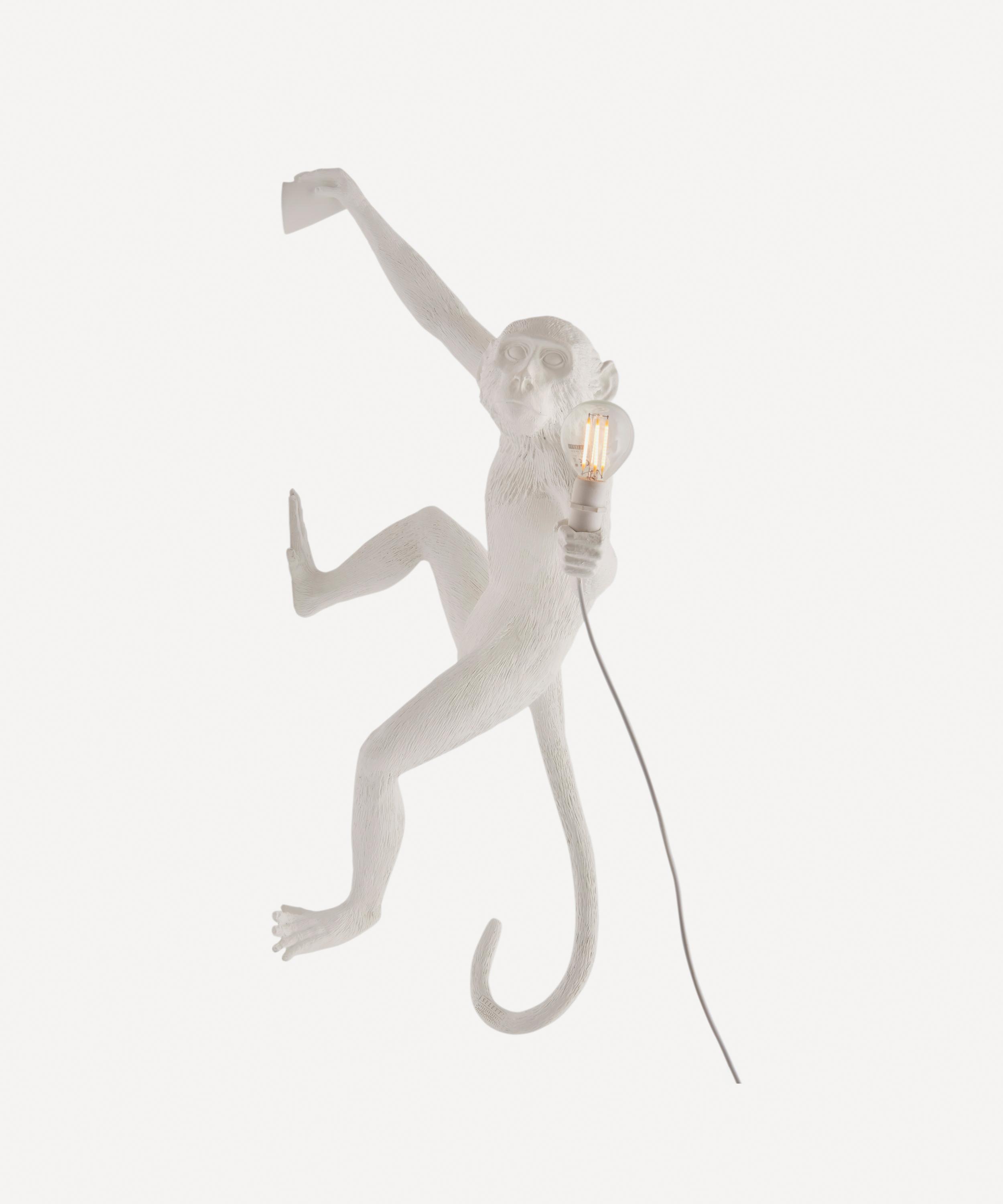 This decorative piece features a resin sculpture of a monkey swinging overhead, staring curiously at a decorative led edison bulb. This hanging monkey lamp is crafted from white resin, comes with an led light bulb included and is for indoor use only.voltage: Standard shipping provides delivery to the front door of a residence or dock of a commercial building. Ever since it was established in 1964, the company has pursued its mission of making. Seletti monkey lamp hanging right hand white a crazy and crafty family. Cm.37×20,5 h.76,5 for indoor use led light bulb included designed by marcantonio Sitting, standing or hanging, each monkey is composed entirely of resin like a statuesque wax sculpture. Monkey lamps have a strong theatrical impact in which art, design and the world of nature blend together creating magical products. Suspend his rope to the ceiling and simply plug into the mains via the cable and this monkey will shine. The monkey lamp collection designed by marcantonio raimondi malerba has now reached cult status. Monkey lamp // outdoor // white // hanging; The exquisite level of detail paired with the warm, ambient lighting gives the fixture a captivating lifelike quality that leaves a lasting impression. New from seletti, the monkey lamp is a wild yet functional lighting design by the italian designer marcantonio raimondi malerba.